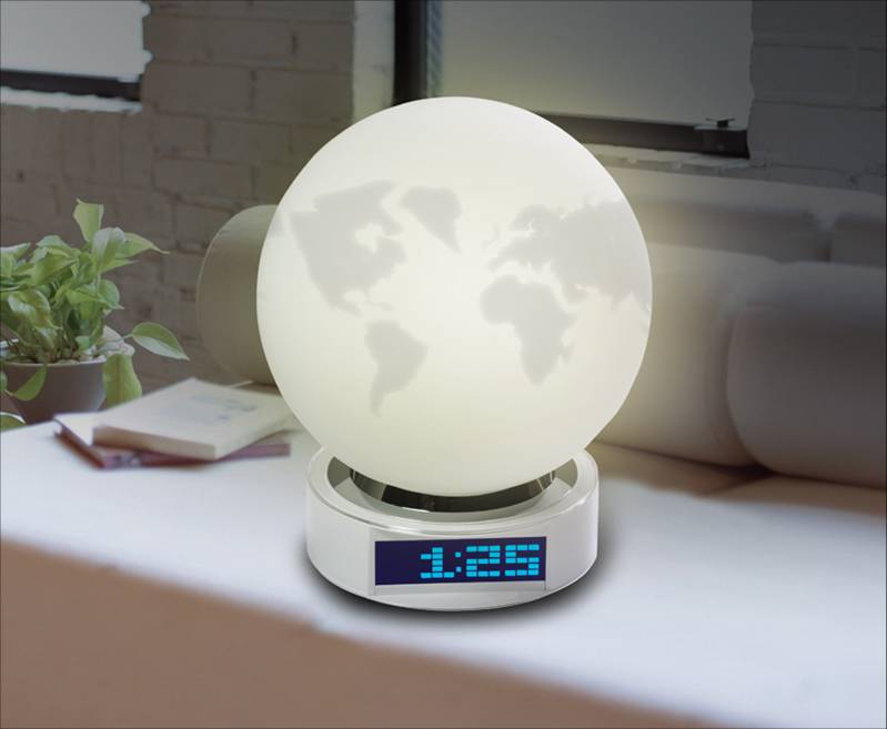 自动旋转世界地图 触摸式灯光明暗调节 彩色屏幕时钟显示 高品位磨砂灯罩,光线自然柔和 进口IC设计,节能环保