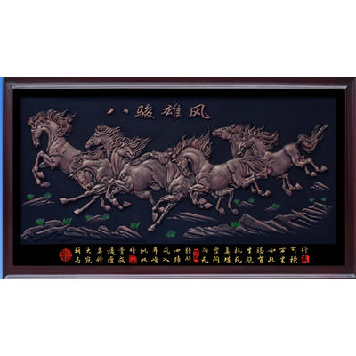 八骏雄风 大型壁画 【 产品规格】:820*450MM 【产品名称】:马到成功立体雕塑款 【工 艺】:浮雕、彩绘 【零售价格】:1898元