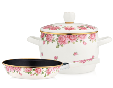 >> 粉色玫瑰二件套 24汤锅+26煎盘